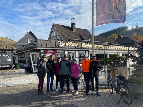 Die Abschlusstour am Sonntag, dem 19. Oktober ging bei kalter Witterung aber trockenem Wetter über Neukirchen, Braunshausen, Hallenberg nach Züschen. Dort wurde bei einem Zwischenstopp im Landhotel Haus Mühlengrund an der B 236 ein warmes Getränk zu sich genommen. Von dort ging es wieder zurück über Liesen, Hesborn nach Dreislar. In der Dorfschänke gab es dann für alle Teilnehmer die Möglichkeit einen kleinen Imbiss zu sich zu nehmen. Dabei ließ man auch die Erlebnisse der Fahrradtouren Revue passieren.